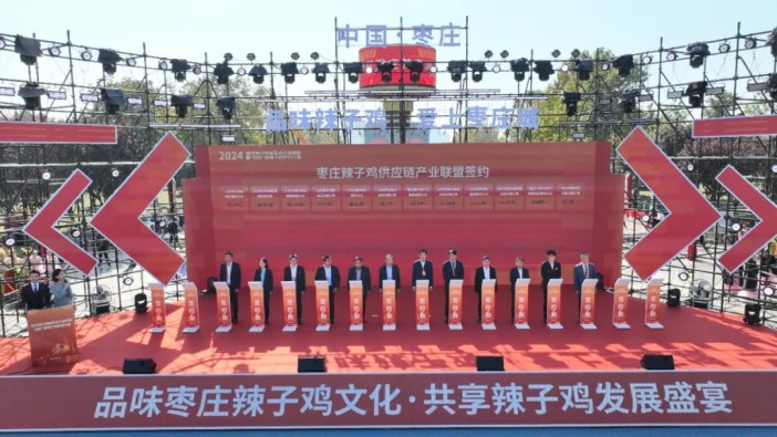 張國洲在致辭中表示,棗莊辣子雞是山東省非物質文化遺產,是我市最具特色的傳統地方美食,棗莊也被中國烹飪協會授予 “中國辣子雞之鄉”的榮譽稱號。近年來,我們圍繞“把棗莊辣子雞打造成百億級富民大產業”目標,堅持養殖、加工、銷售全鏈條發力,努力構建貫通產加銷、融合農文旅的特色美食新業態。誠邀與會來賓共享辣子雞美食文化魅力,共謀辣子雞產業發展,在更高層次、更廣范圍、更寬領域開展全方位合作。我市將以此次活動為契機,進一步推動棗莊辣子雞一二三產融合發展,加快打造具有地方特色的地標食品IP,持續擦亮“中國辣子雞之鄉”的城市名片,讓鮮香味濃的“辣子雞”走出棗莊、走向全國。