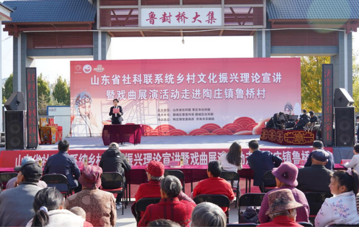 10月7日,全省社科聯(lián)系統(tǒng)鄉(xiāng)村文化振興理論宣講暨戲曲展演活動走進(jìn)薛城區(qū)陶莊鎮(zhèn),通過省市區(qū)三級聯(lián)動、鎮(zhèn)村配合,“理論宣講+戲曲展演”的形式,實現(xiàn)優(yōu)質(zhì)文化資源下沉,一場場好戲送到了群眾家門口,為鄉(xiāng)村文化振興和城市社區(qū)文化建設(shè)助力添彩。