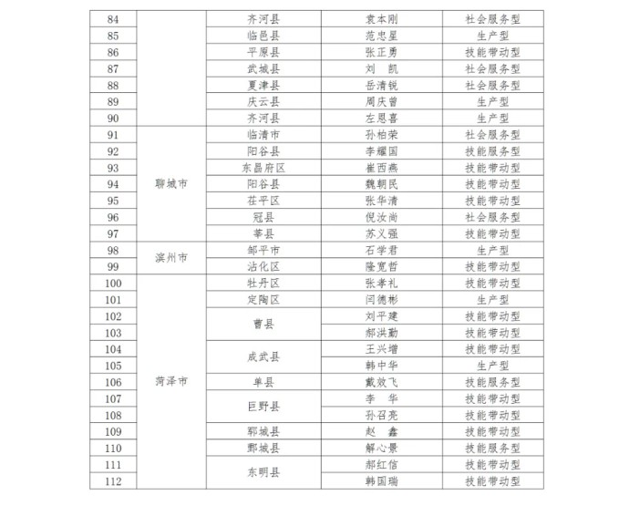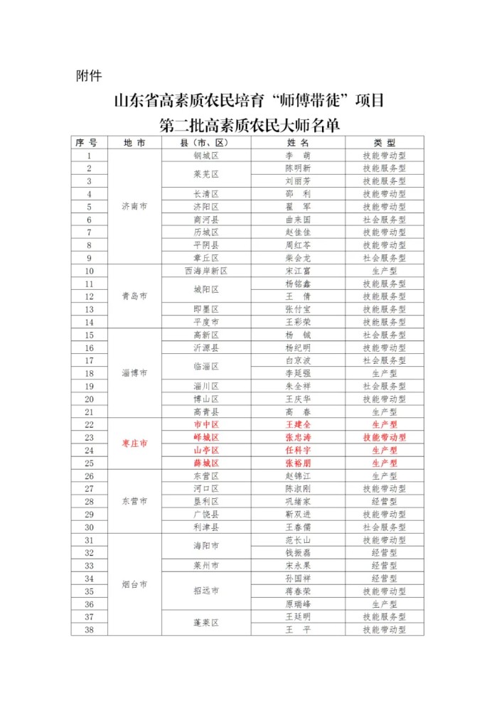 根據(jù)《山東省農(nóng)業(yè)農(nóng)村廳關(guān)于組織開展第二批高素質(zhì)農(nóng)民大師遴選工作的通知》(魯農(nóng)廣字〔2024〕4號(hào))要求,經(jīng)個(gè)人申請(qǐng)、縣級(jí)審核、市級(jí)審查、省級(jí)評(píng)審、社會(huì)公示等程序,確定李萌等112名“土專家”“田秀才”及產(chǎn)業(yè)發(fā)展帶頭人、傳統(tǒng)技藝傳承人等為第二批高素質(zhì)農(nóng)民大師,濟(jì)南市鋼城區(qū)等53個(gè)縣(市、區(qū))為新增高素質(zhì)農(nóng)民培訓(xùn)“師傅帶徒”項(xiàng)目縣(市、區(qū)),實(shí)施高素質(zhì)農(nóng)民培育“師傅帶徒”項(xiàng)目,具體名單詳見附件。