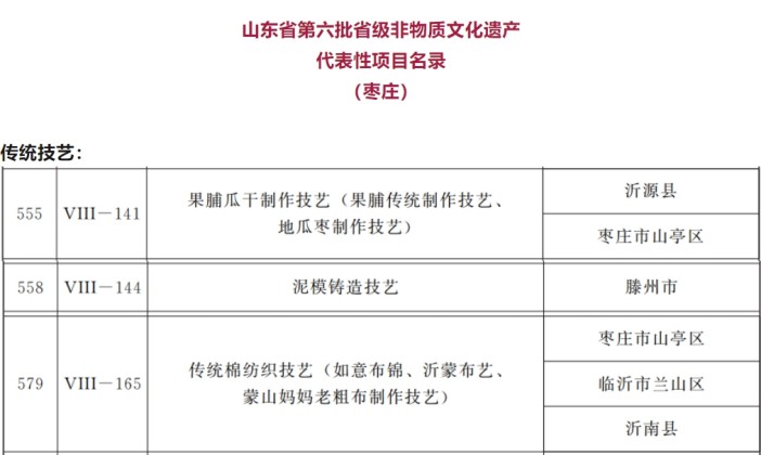 12月19日,山東省人民政府發布通知,公布第六批省級非物質文化遺產代表性項目名錄。其中,棗莊市3項入選省級非物質文化遺產代表性項目名錄、16項入選省級非物質文化遺產代表性項目名錄擴展項目名錄。