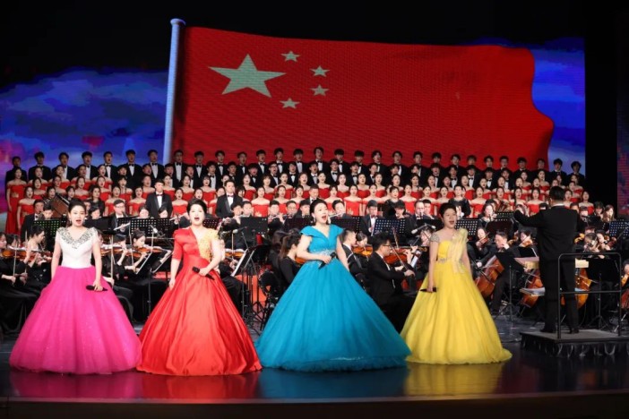 當天的棗莊大劇院燈光璀璨、座無虛席。下午15時,隨著歡快的圓號聲響起,管弦樂《北京喜訊到邊寨》拉開了音樂會的帷幕。整場演出分為“輝煌歷程”“英雄贊歌”“歌里棗莊”“展望未來”4個篇章。榴花競相綻放、紅旗迎風飄揚,熱烈而深情的《春節(jié)序曲》,讓溫暖的記憶回蕩在觀眾心中,《紅旗頌》《永遠跟黨走》《在燦爛陽光下》深情謳歌黨的豐功偉績,傳遞出奮進新時代、建功新征程的磅礴力量。