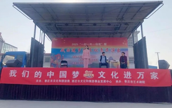 為進(jìn)一步豐富廣大群眾精神文化生活,助力鄉(xiāng)村文化振興,1月3日,由棗莊市文化和旅游局、棗莊市文化和旅游事業(yè)發(fā)展中心主辦,棗莊市藝術(shù)劇院承辦的2025年度“一村一年一場戲”暨戲曲進(jìn)鄉(xiāng)村文化惠民演出活動(dòng)在北莊鎮(zhèn)北莊村、半湖村輪番上演,將文藝演出直接送到群眾家門口,讓村民足不出戶就能享受到豐富的“文化大餐”。