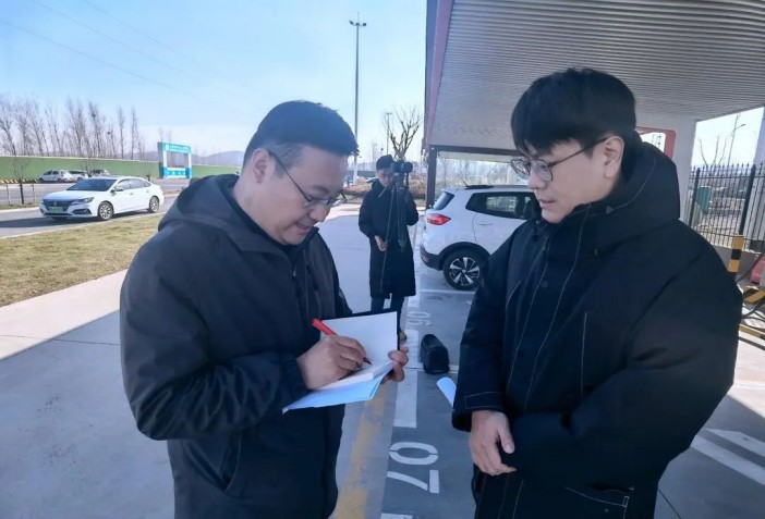 1月7日,大眾新聞記者在棗莊首座“光儲充檢”智慧驛站采訪。