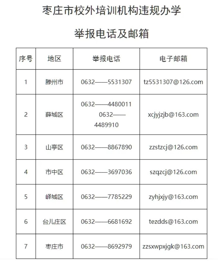 1.棗莊市校外培訓(xùn)機(jī)構(gòu)違規(guī)辦學(xué)舉報電話及郵箱