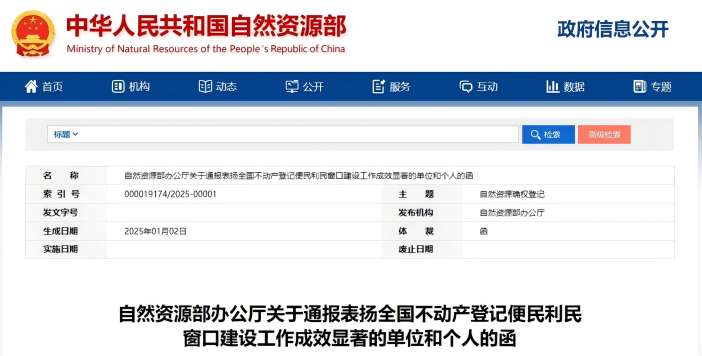 自然資源部辦公廳關于通報表揚全國不動產登記便民利民窗口建設工作成效顯著的單位和個人的函