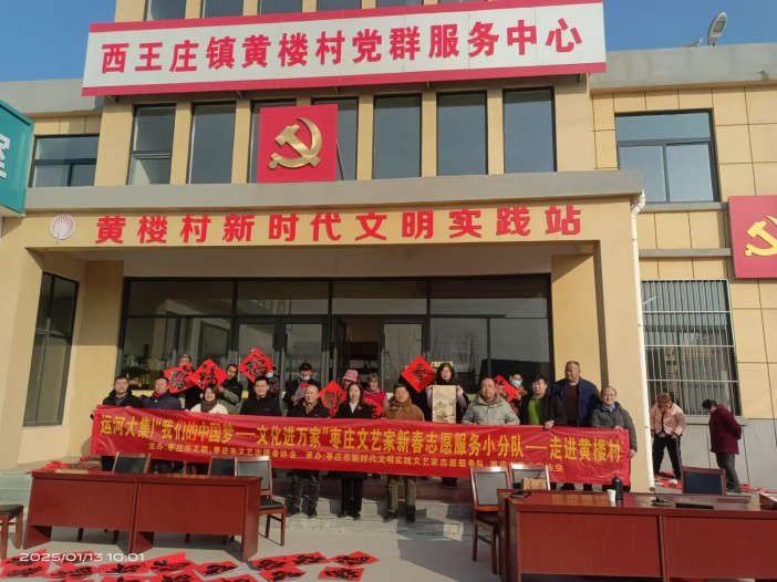 2025年1月13日,在新春佳節(jié)即將來臨之際,一場(chǎng)意義非凡的文化盛宴在棗莊市市中區(qū)西王莊鎮(zhèn)黃樓村精彩上演。運(yùn)河大集“我們的中國(guó)夢(mèng),文化進(jìn)萬家”棗莊文藝家新春志愿服務(wù)小分隊(duì)走進(jìn)黃樓村,為這里的廣大群眾帶來了濃濃的年味與深深的祝福。