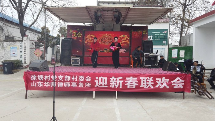 在徐塘村文明實踐廣場上,由徐塘村村委會和山東華師律師事務(wù)所聯(lián)合舉辦的“春晚”正在火熱舉行,表演者們用歡快的歌舞,喚醒沉睡的大地,奏響春天的樂章,瞬間點燃了現(xiàn)場的氣氛。隨后《小白楊》《拜年》《逛新城》等20余個精彩節(jié)目輪番上演,精彩紛呈,高潮迭起。