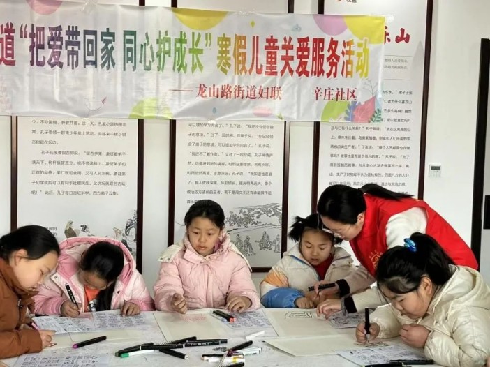為豐富轄區青少年兒童的寒假生活,同心守護孩子們健康成長,棗莊市市中區龍山路街道辛莊社區婦聯攜手陽光雨露社會工作服務中心及辛莊社區慈善基金,創新性地以“公益換公益”形式,推出了“把愛帶回家 同心護成長”公益美術課寒假兒童關愛服務活動。