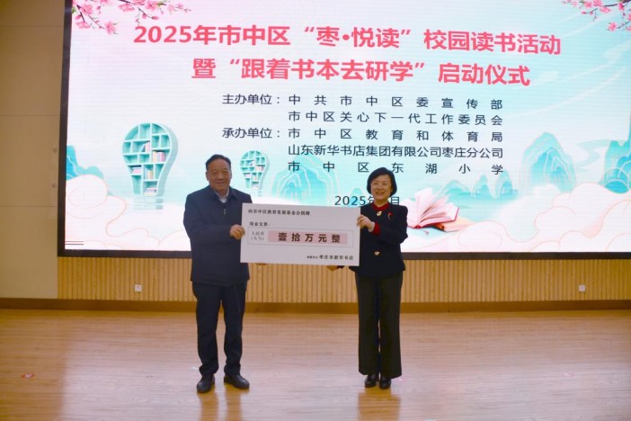 活動中,宣讀了《關(guān)于表揚2024年市中區(qū)“棗·悅讀”校園讀書活動優(yōu)秀組織單位、優(yōu)秀指導(dǎo)教師和先進個人的通知》,棗莊市新華書店向市中區(qū)10所學(xué)校捐贈20萬元圖書,并向市中區(qū)教育發(fā)展基金會捐贈10萬元。