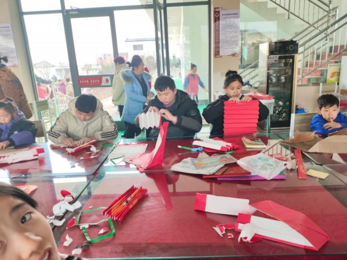 活動現場十分熱鬧,桌上擺滿了各種折紙的材料和工具,工作人員、志愿者與孩子們圍坐桌邊,一邊興致盎然地討論著折紙的方法,一邊動手實踐,折紙、畫圖、精心修剪,很快一張張彩紙在指尖變了模樣,一件件栩栩如生的手工作品展現在大家面前。看著自己的動手成果,小朋友們臉上洋溢著歡快的笑容。 除了折紙,孩子們還在工作人員和志愿者的帶領下來到廣場上做游戲,平日安靜的廣場此時處處充滿了歡聲笑語。活動結束后志愿者與孩子們在張莊村愛心食堂共進午餐。