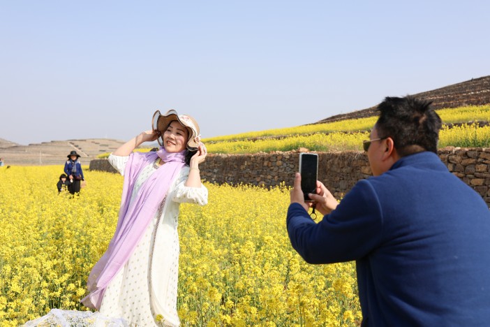 連日來,山亭區山城街道兩山空的梯田油菜花競相綻放,金黃的油菜花層層疊疊,如詩如畫,吸引眾多游客前來打卡。山亭區借“花”生財,游客蜂擁而至帶火當地農家樂,相關政策扶持讓“金色經濟”綻放成農民增收致富的“金鑰匙”。 (記者 劉明 攝)