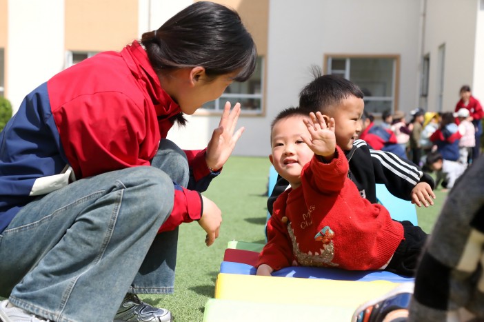 4月1日,在市中區一托育服務機構,老師陪伴孩子們做體能游戲。 近年來,市中區積極探索建立健全覆蓋多面、普惠優先、管理規范、服務多元的嬰幼兒照護服務體系,按照“家庭為主、托育補充、以城帶鄉、以點帶面”的原則,不斷滿足育兒家庭對托育機構托位的需求,化解家庭托育“帶娃難”。 (王海楠 攝)