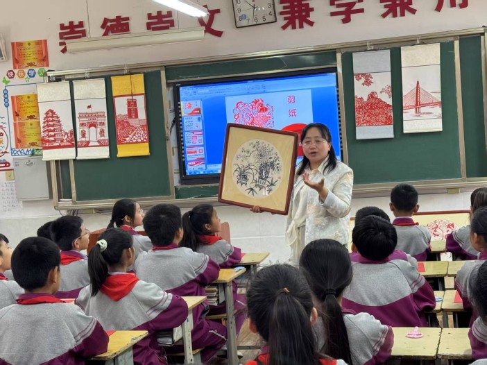 劉娟老師用生動形象的語言講述了剪紙藝術的悠久歷史和豐富寓意,從古老的民間傳說到現代的藝術創新,讓同學們對剪紙這一傳統技藝有了全面的認識。