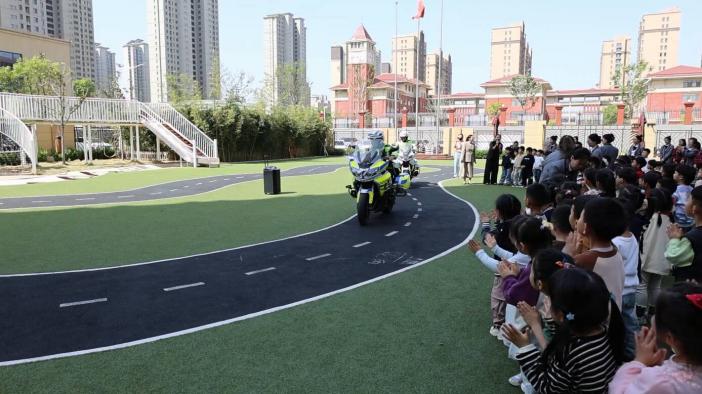 “快看鐵騎叔叔真帥”!“摩托車真有型”!這是在4月16日,棗莊市市中區(qū)一幼兒園的小朋友在棗莊交警開展交通安全宣傳活動中,看到英姿颯爽的鐵騎交警時,發(fā)出的贊嘆。