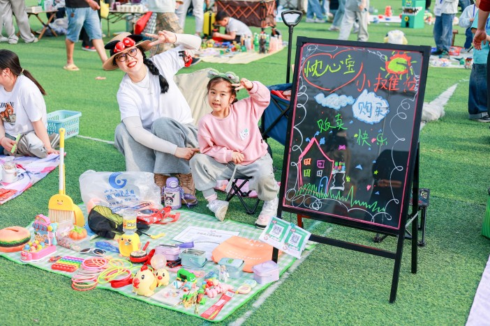 4月20日,棗莊媽媽團跳蚤市場義賣活動在市中區東湖公園舉行,參與活動的孩子們化身“小掌柜”,在攤位前認真交換玩具、書籍,并將最終籌集的善款2425元全部捐至市慈善總會。 (記者 王龍飛 攝)