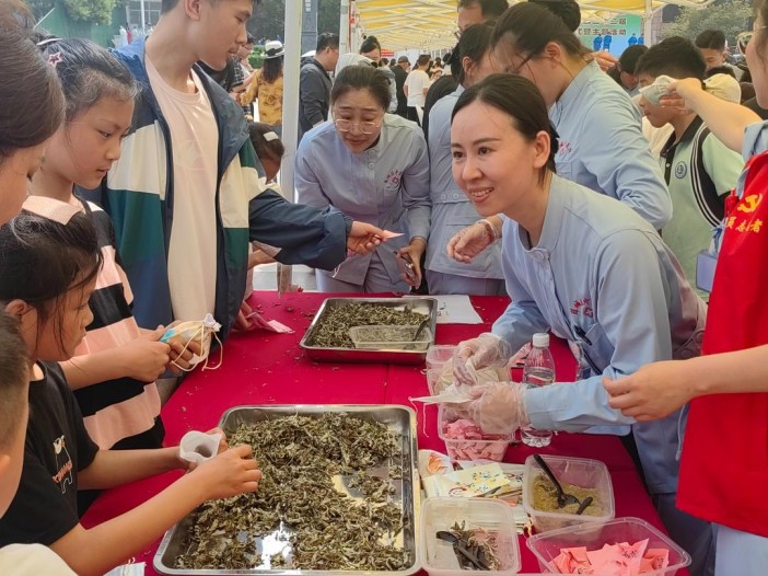 活動現場設置中醫藥展區、非遺體驗區、鄉村文化振興展區、社科志愿服務展區,既有中醫藥理療義診,同時還有太極拳、太極扇等中醫傳統功法展演,中醫專家們為前來咨詢的市民提供一對一健康咨詢服務,耐心解答各種疑問,通過“望、聞、問、切”等診斷方法,為不同病癥的患者提出合理的診療建議,現場還有針灸、耳穴壓豆、穴位貼敷、中藥文創、茶飲等體驗活動,讓市民近距離感受中醫藥文化的獨特魅力,傳播和普及中醫藥文化知識。