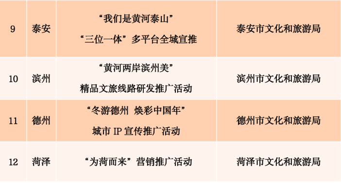 5月19日,山東省文化和旅游廳公布2024年“好客山東”國(guó)內(nèi)旅游宣傳推廣十佳案例10項(xiàng)、典型案例12項(xiàng)。其中,山東省臺(tái)兒莊古城旅游集團(tuán)有限公司申報(bào)的《臺(tái)兒莊古城“國(guó)潮文化節(jié)”傳統(tǒng)與潮流的沉浸式文旅融合創(chuàng)新實(shí)踐》入選十佳案例名單;棗莊市文化和旅游局申報(bào)的《大小搭配棗莊“文旅兩官”營(yíng)銷破圈新路徑》入選典型案例名單。