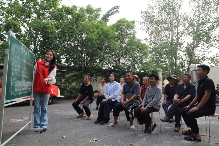 “鎮(zhèn)上安排了年輕志愿者將這么好的課堂知識(shí)送到我們身邊,我非常高興也很珍惜。借這個(gè)機(jī)會(huì),大家一起拉一拉家常,感覺我們的關(guān)系都近了。”村民劉金秀興高采烈地說道。在西金莊村文明廣場(chǎng),志愿者理論宣講團(tuán)宣講員手握教具,指著“小黑板”,用生動(dòng)新穎的方式為村民們講述著新時(shí)代移風(fēng)易俗的內(nèi)容、內(nèi)涵、要求等政策理論知識(shí),并從婚事新辦、喪事簡(jiǎn)辦、喜事廉辦等8個(gè)方面提出倡議。戶外宣講條件受限,但流動(dòng)的“小黑板”上圖文內(nèi)容豐富,有效提升了宣講效果。