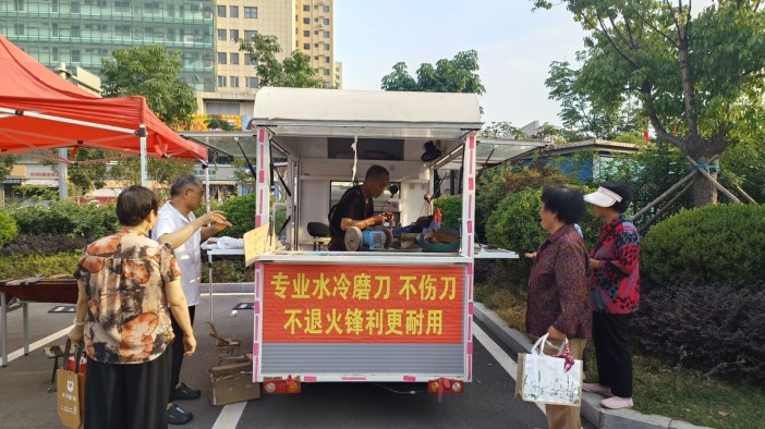活動(dòng)現(xiàn)場(chǎng),公益活動(dòng)區(qū)里,磨刀師傅的砂輪飛轉(zhuǎn)著磨亮菜刀,口腔診所的醫(yī)生正俯身幫老人檢查牙齒。不遠(yuǎn)處的金融互動(dòng)區(qū)飄來(lái)爆米花的甜香,孩子們攥著積分券圍在抓娃娃機(jī)前,家長(zhǎng)們則在酸梅湯攤位前笑著聊天,陽(yáng)光把笑臉都鍍上了暖金色。