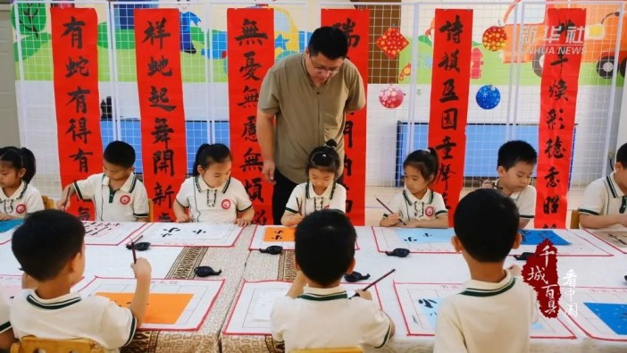 活動(dòng)現(xiàn)場(chǎng),孩子們?cè)诠狞c(diǎn)聲中,有模有樣地進(jìn)行舞龍表演;川劇變臉?biāo)嚾艘灰u華服登場(chǎng),與孩子們近距離展示互動(dòng),贏得陣陣掌聲與歡呼聲?;顒?dòng)設(shè)置了中華武術(shù)、葫蘆雕刻、書(shū)法、傳統(tǒng)相聲、糖畫(huà)等非遺項(xiàng)目展演,讓孩子們?cè)诔两襟w驗(yàn)中感受中華傳統(tǒng)文化的博大精深。