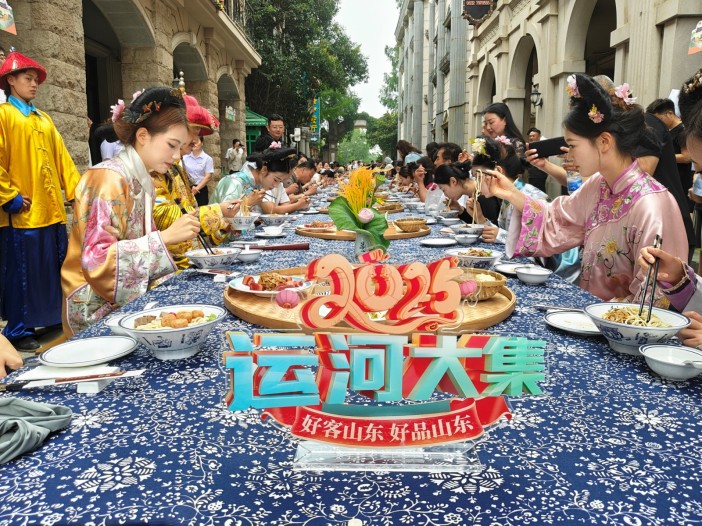 此次運河大集活動,游客們不僅可以品嘗到地道的棗莊美食,如黃花牛肉面、菜煎餅、羊肉湯等,購買到各種精美的文創產品和手工藝品,如巧姐柳編、蘭祺剪紙等,還可以欣賞到各種非遺項目和民俗表演,感受傳統文化的魅力。