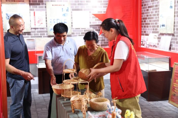 活動中,志愿者在現場設置手造非遺展示臺,向村民介紹各類非遺物品,讓村民親身感受非遺技藝的魅力。在抗戰史料展區,牛角村黨支部書記王建正聲情并茂得向大家講解抗戰時期的珍貴史料、真實圖片與感人故事,展現了棗莊地區抗戰歷程,激勵村民銘記歷史,緬懷先烈。