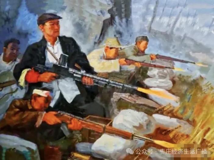 鐵道游擊隊紀念館第三展室一幅《黃埠莊激戰》油畫