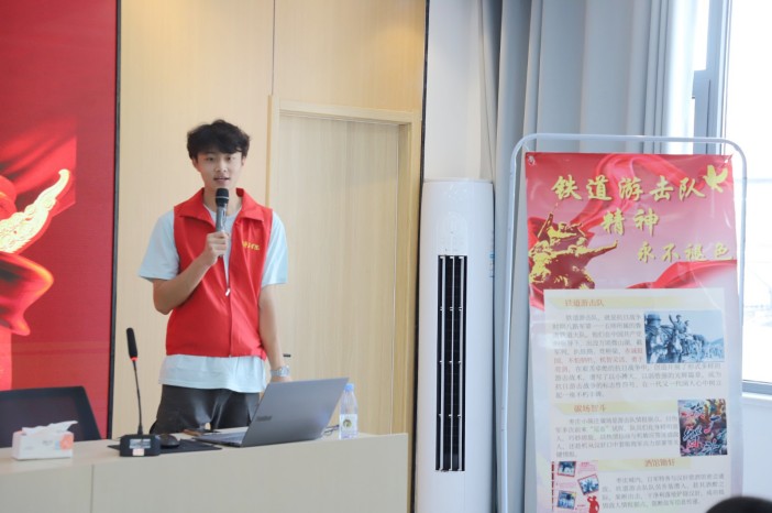 活動中,棗莊學(xué)院老師以“傳承美德,賡續(xù)紅色血脈”為主線,圍繞“忠勇、團(tuán)結(jié)、堅韌、奉獻(xiàn)、愛國”的鐵道游擊隊精神內(nèi)核,通過歷史回溯、事跡再現(xiàn)等形式,生動鮮活地詮釋了不畏艱險、敢于斗爭、舍生忘死、服務(wù)人民等中華傳統(tǒng)美德與紅色精神的融合。在講述“愛國情懷”時,棗莊學(xué)院志愿者們以鐵道游擊隊隊員“智炸火車護(hù)國寶”的英勇事跡為切入點(diǎn),結(jié)合“五星紅旗的由來”中革命先烈浴血奮戰(zhàn)、守護(hù)國旗尊嚴(yán)的感人故事,讓聽眾從歷史烽煙與紅色記憶中深刻體會到愛國精神的磅礴力量,激發(fā)了大家對祖國的無限熱愛與崇高敬意,引發(fā)了強(qiáng)烈的情感共振。