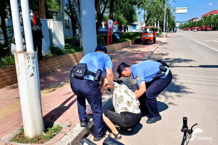 7月5日,棗莊市公安局山亭分局山城派出所民警在處警返回途中,及時救助一位騎電動自行車摔倒在地的群眾。