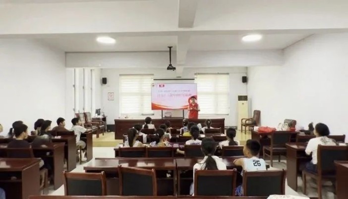 在書院講堂內,志愿者為孩子們生動講述臺兒莊戰役中革命先輩的英勇事跡與崇高精神。他們運用青言青語,將厚重的黨史國史轉化為孩子們聽得懂、記得住、有感悟的生動敘述。