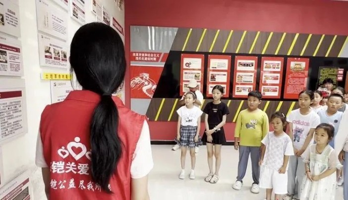 隨后,大學生志愿者與孩子們一起走進華陽社區微黨史館,在一幅幅展板前駐足凝視,聆聽紅色故事,感受革命情懷。作為社區紅色教育的重要陣地,這座“家門口”的微展館通過沉浸式體驗,讓紅色文化真正觸手可及。