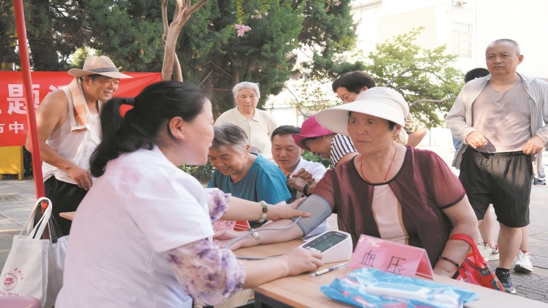 日前,棗莊市市中區文化路街道聯合市中區人民醫院在立新小區開展中醫藥科普義診活動,為炎炎夏日里的居民送上貼心的“健康禮”,幫助大家掌握科學的防暑降溫技巧,受到小區居民的一致好評。(記者 王龍飛 通訊員 辛秋實 攝)