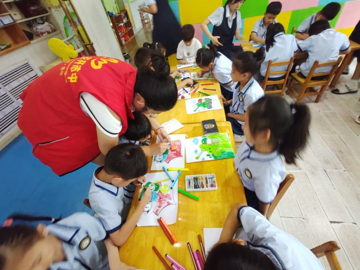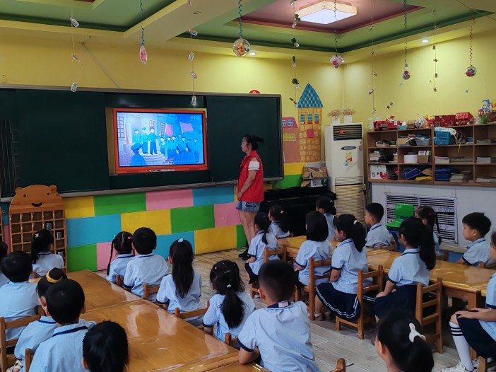 “中國的國旗是什么?”“五星紅旗!”“五星紅旗的五顆星代表什么?”……活動中,志愿者先用一問一答的方式,帶領孩子們及家長回顧了中國共產黨艱苦卓絕的奮斗歷程,讓孩子們進一步了解了中國共產黨的光輝歷史,孩子們爭先搶答,激勵大家更加珍惜現在的美好生活。
