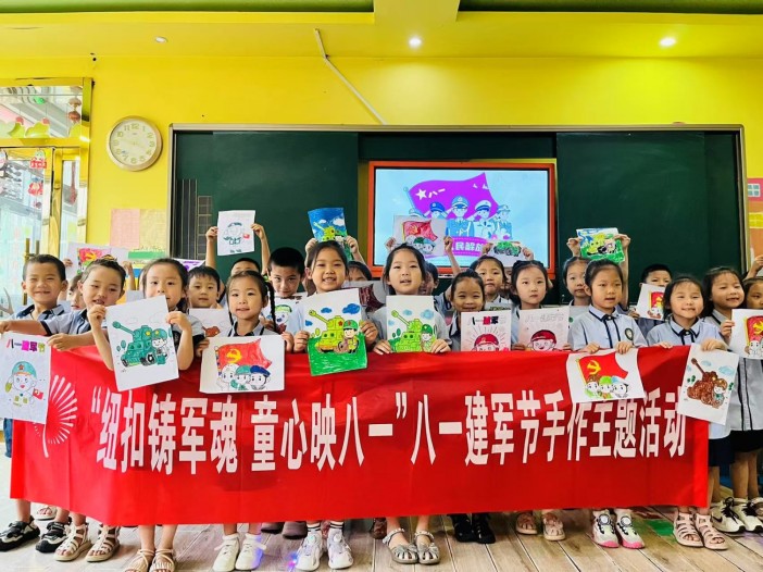為了讓轄區兒童深入了解中國人民解放軍的光榮歷史,繼承和發揚中國人民解放軍的優良傳統和作風,激發愛國主義情懷,8月1日下午,棗莊市市中區龍山路街道老車站社區來到市中區振興幼兒園開展了“紐扣鑄軍魂 童心映八一”八一建軍節手作主題活動,此次活動不僅為孩子們提供了一個展現創意的平臺,更讓他們在創作中深入了解中國人民解放軍的光輝歷史與卓越貢獻。
