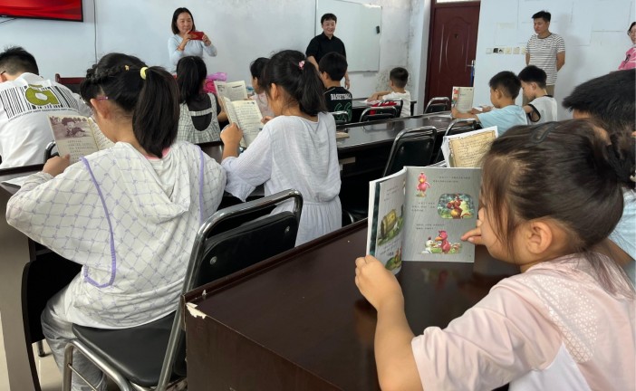 活動過程中, 志愿者老師用生動的語言講述繪本故事,孩子們時而托腮思考,時而舉手提問,眼睛緊緊盯著手中的故事書。他們坐在桌前,全神貫注,沉浸在書的世界里,小手指還不時輕輕劃過書頁上的文字,隨著情節的推進,時而眉頭緊鎖,時而嘴角上揚,仿佛在與書中的角色進行一場無聲的對話。整個實踐站彌漫著濃濃的書香,成為了孩子們暑期里最愛的知識樂園。