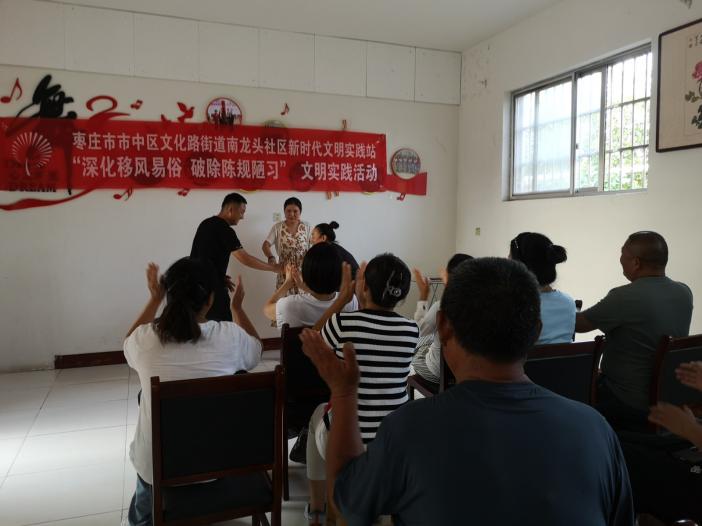 為弘揚社會主義核心價值觀,深化移風易俗,抵制陳規陋習,倡樹文明新風,8月21日,市中區文化路街道南龍頭社區新時代文明實踐站開展“深化移風易俗 破除陳規陋習”文明實踐活動。