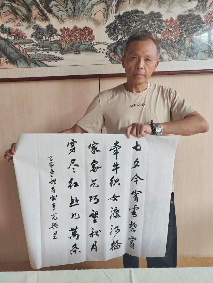 活動現場,社區邀請書法老師現場執筆示范,圍繞七夕主題進行書法創作。老師筆力遒勁、氣韻生動,將七夕節的美好寓意融入字里行間。社區居民紛紛駐足觀賞,認真聆聽書法知識講解,近距離感受漢字之美與傳統節日的文化內涵。在墨香四溢的氛圍中,大家不僅領略了書法藝術的獨特魅力,也進一步加深了對七夕節所蘊含的忠貞情感、家庭美德和文化價值的理解。此次活動將傳統節日與高雅藝術相結合,既是一次美的享受,也是一次文化的熏陶。通過現場觀摩與互動交流,居民們在潛移默化中增強了對中華優秀傳統文化的認同感和自豪感,體會到節日背后深厚的人文精神。