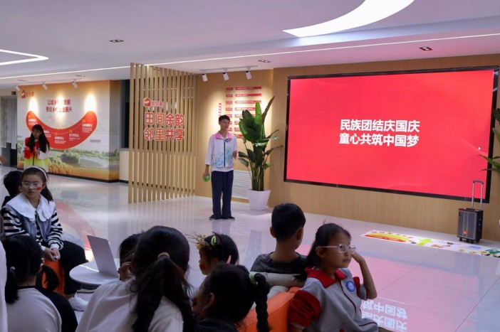 作為活動的溫暖開篇,“紅色影像?文化溯源”環節,是一場跨越時空的文化對話。工作人員播放精心挑選的愛國短片,鏡頭從革命英雄的崢嶸事跡緩緩切換至祖國山河的壯美畫卷,在紅色記憶與家國盛景交織中,孩子們真切感受著民族團結、祖國強大的磅礴力量,通過互動分享更深刻理解各民族并肩奮斗的意義,讓鑄牢中華民族共同體意識的種子隨愛國情懷一同扎根心間。