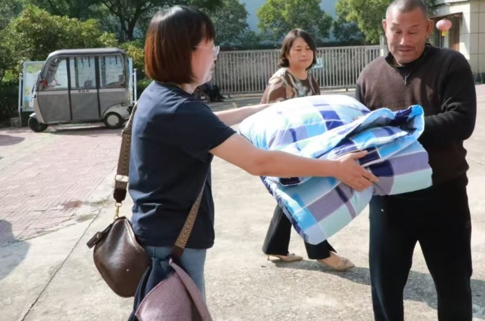 活動伊始,街道工作人員來到了文化社區的幸福食堂,這里不僅是老人們用餐的地方,更是他們日常居住、休閑的重要場所。街道工作人員和志愿者細致地為老人們整理床鋪,更換干凈的床褥,并與他們親切交談,細致詢問他們的身體狀況和生活需求。一床床柔軟的褥子,鋪開的不僅是身體的溫暖,更是吳林街道對轄區老年人一份沉甸甸的關愛與守護,讓幸福的“食”光里,更添一份“住”的安心。