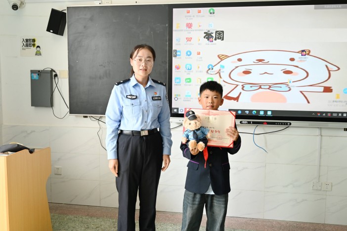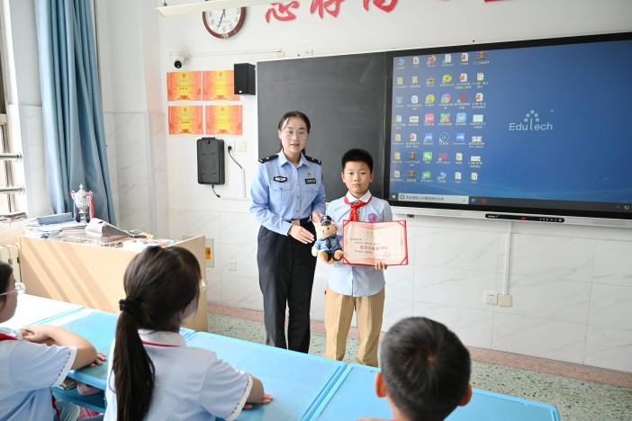 在班級(jí)同學(xué)們的熱烈掌聲中,民警將榮譽(yù)證書和禮物送到韓明洋、宋田源手中,并鼓勵(lì)他們繼續(xù)保持這種優(yōu)秀品質(zhì)。兩名同學(xué)接過禮物時(shí),臉上洋溢著靦腆而自豪的笑容,表示今后會(huì)繼續(xù)努力,幫助他人。