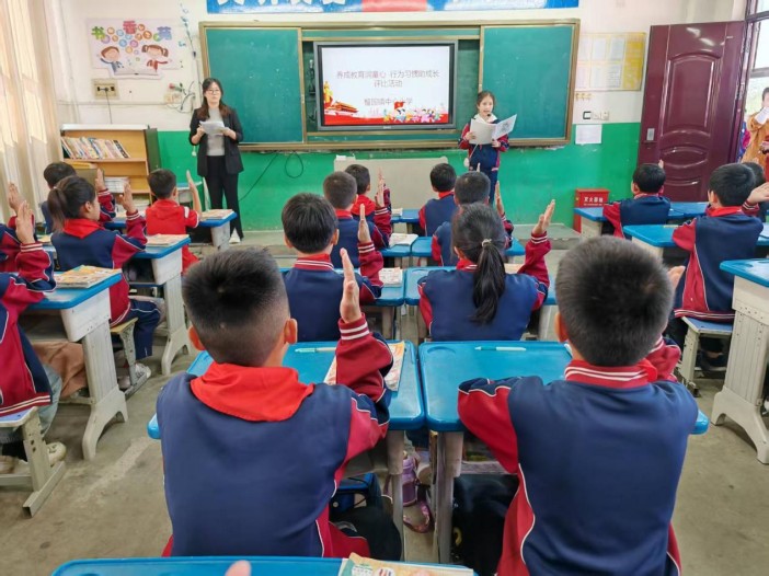 本次行為習慣養成展示活動以班級為單位,以課堂教學組織形式展示學生的課前準備、上課禮儀、坐姿規范、閱讀規范、表達規范、書寫規范、放學收拾書包、路隊規范等多個方面。展示過程中,老師們或“小干部”通過口令訓練、兒歌、評價語言多樣化等形式貫穿于課堂始終。