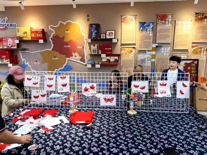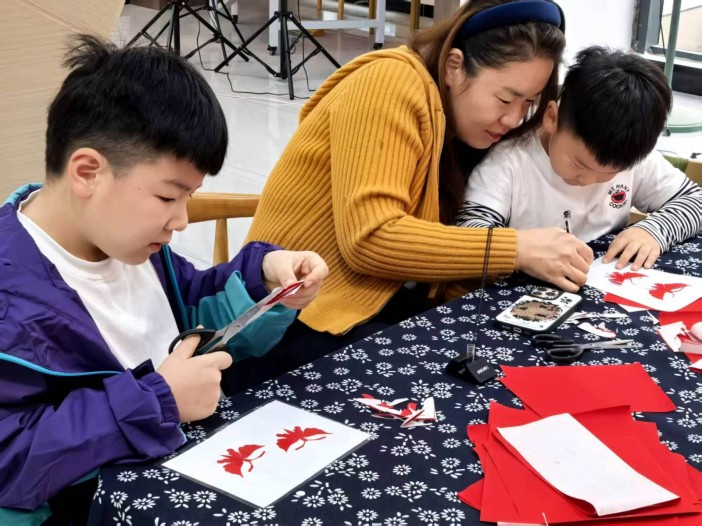 活動現(xiàn)場打造“非遺剪紙文化角”,邀請非遺剪紙傳承人王老師現(xiàn)場授課,從最基本的折疊方法,到如何處理復(fù)雜的線條和圖案,再到不同地區(qū)剪紙藝術(shù)的風(fēng)格差異,深入淺出,居民們聽得津津有味。這種“歷史 + 技藝”的雙重傳遞,讓親子非遺剪紙活動從簡單的“手工創(chuàng)作”升級為沉浸式的“文化體驗(yàn)課堂”,不僅讓孩子掌握了剪紙技巧,更讓家長與孩子共同深化了對非遺文化的認(rèn)知。