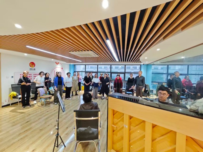 活動(dòng)現(xiàn)場(chǎng),合唱團(tuán)成員們精神飽滿、神情專注,跟隨指導(dǎo)老師的節(jié)奏認(rèn)真練習(xí)。從氣息的平穩(wěn)控制到唱腔的細(xì)膩打磨,從單個(gè)音符的校準(zhǔn)到和聲的默契配合,成員們反復(fù)揣摩每一處細(xì)節(jié),力求將“長(zhǎng)亭外,古道邊”的經(jīng)典意境完美呈現(xiàn)。既有歲月沉淀賦予歌聲的溫潤(rùn)厚重,又有多重和聲交織出的豐富層次,將曲中蘊(yùn)含的離別悵惘與真摯珍重詮釋得淋漓盡致,感染著在場(chǎng)的每一個(gè)人。