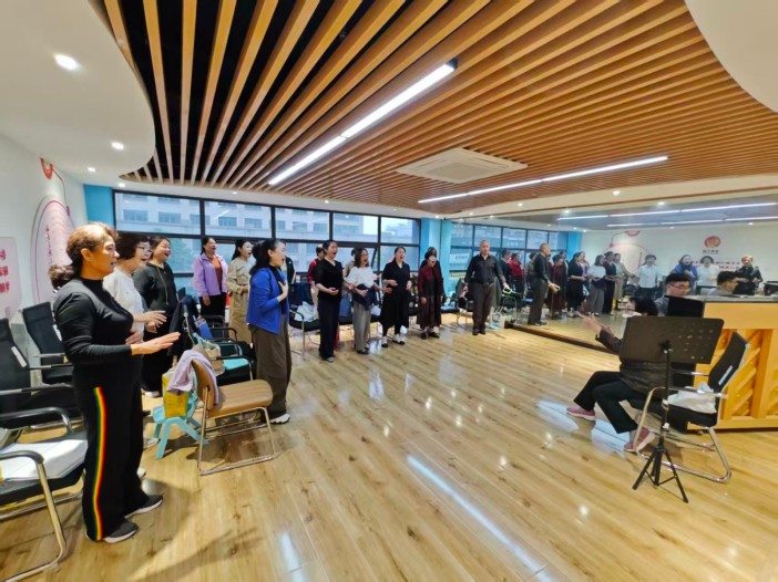 排練過(guò)程中,成員們相互交流技巧、彼此鼓勵(lì)打氣,遇到難點(diǎn)段落便共同探討、反復(fù)練習(xí),現(xiàn)場(chǎng)氛圍熱烈而融洽。大家紛紛表示,社區(qū)提供的專業(yè)活動(dòng)空間讓排練更加有序高效,規(guī)律的合唱練習(xí)不僅圓了自己的音樂夢(mèng)想,更讓大家在歌聲中結(jié)識(shí)了志同道合的朋友,有效拉近了鄰里之間的距離。一位合唱團(tuán)成員笑著說(shuō):“每次和大家一起唱歌都特別開心,不僅心情舒暢,還能學(xué)到專業(yè)知識(shí),這樣的活動(dòng)真是太有意義了!”