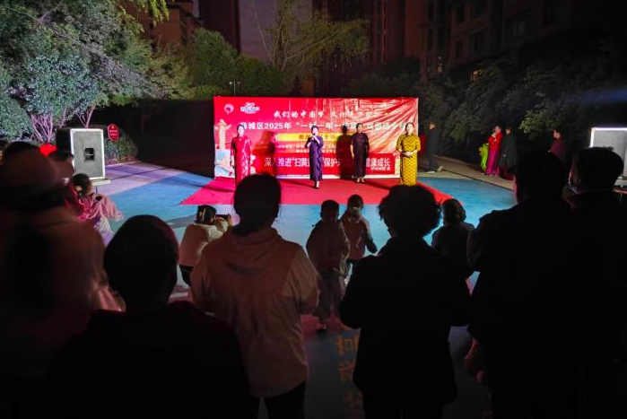 此次演出不僅是一場精彩的藝術展示,更是一次溫暖的鄰里相聚。演出過程中,居民們一邊欣賞精彩的節目,一邊與身邊的鄰里交流討論,分享著對戲曲的喜愛和生活的趣事。家住3號樓的王阿姨笑著說:“平時大家都忙著各自的生活,很少有機會這么熱鬧地聚在一起,這場戲讓我們鄰里之間的距離更近了,感覺社區就像一個溫暖的大家庭。”
