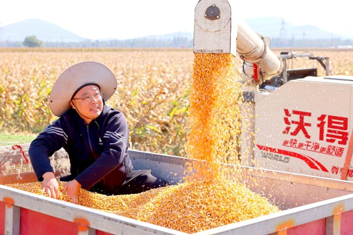 10月23日,市中區西王莊鎮種糧大戶將收獲的玉米裝車。(吉喆 王瓊 曹壯壯 攝)