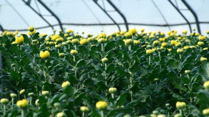 “在長(zhǎng)到六七十公分的時(shí)候,為了得到更優(yōu)秀的花,需要進(jìn)行人工干預(yù),把品質(zhì)做到再優(yōu)。大概停止補(bǔ)光20天之后,花芽就開始現(xiàn)蕾了,現(xiàn)蕾之后就找工人進(jìn)行抹蕾。在菊花種植當(dāng)中,抹蕾是一項(xiàng)巨大的工程,需要人工一個(gè)一個(gè)給抹掉,抹完之后,靜待花開就可以了。”天驥生態(tài)農(nóng)場(chǎng)技術(shù)員劉艷飛說。