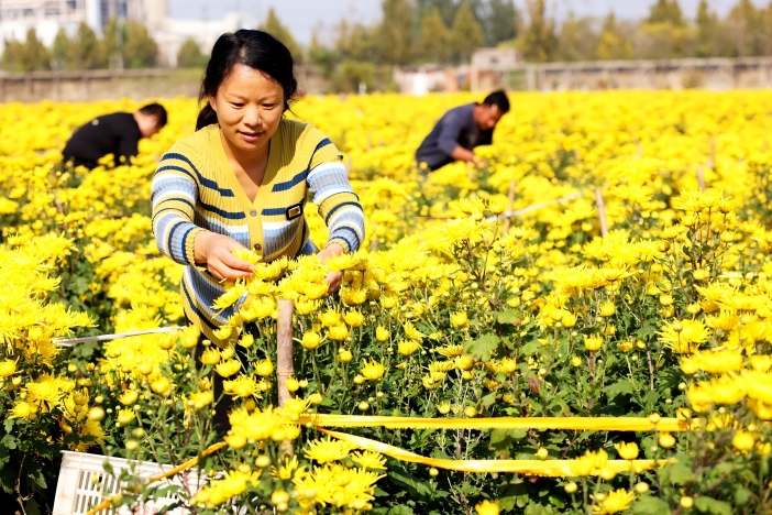 近年來,該村采取“黨支部+合作社+農戶”的富民強村模式,帶領村民發(fā)展“菊花經(jīng)濟”,從菊花種植、養(yǎng)護、采摘、烘干、包裝到銷售實現(xiàn)一條龍服務,助民增收致富,促進鄉(xiāng)村振興。 (吉喆 趙新洲 攝)