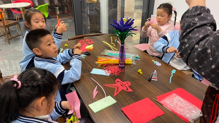 活動(dòng)現(xiàn)場(chǎng),彩色的扭扭棒在孩子們手中靈活變幻,一會(huì)兒變成栩栩如生的花朵,一會(huì)兒又化作可愛(ài)的棒棒糖;紅色的剪紙?jiān)诩舻兜拇┧笙拢芸炀统尸F(xiàn)出雪花、燕子等精致圖案。志愿者耐心地為孩子們講解制作技巧,從扭扭棒的造型設(shè)計(jì)到剪紙的折疊方法,孩子們聽(tīng)得格外認(rèn)真,時(shí)不時(shí)舉手提問(wèn),現(xiàn)場(chǎng)互動(dòng)頻繁。大家專注于手中的創(chuàng)作,小小的房間里充滿了歡聲笑語(yǔ),一件件充滿童趣的手工作品逐漸成型。