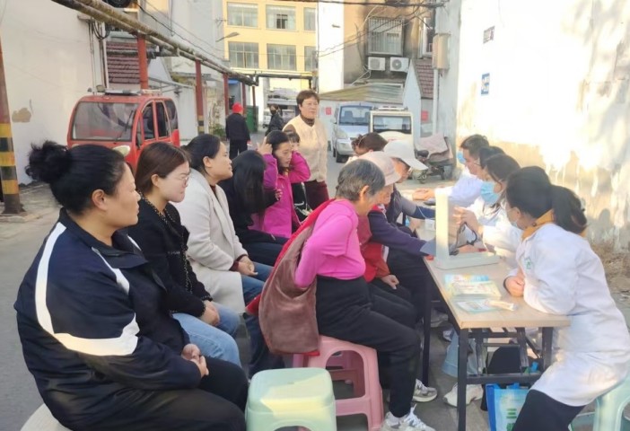 在區政府家屬院,林運社區攜手運河街道社區衛生服務中心開展健康義診活動,醫務人員為居民測量血壓、血糖,提供常見病的初步篩查和診療建議,并針對個體情況給予科學的生活與用藥指導,把貼心、便捷的健康服務送到居民“家門口”。